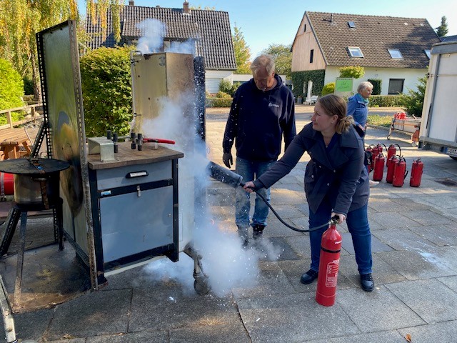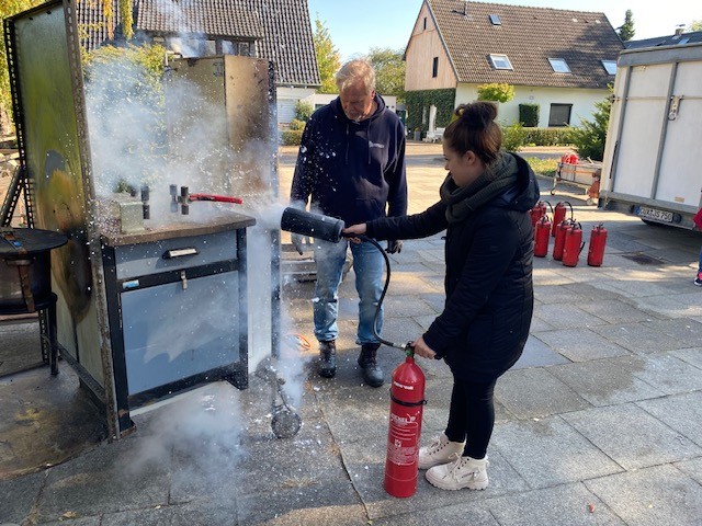 Auch in diesem Jahr führte uns Jens Schnibbe, Brandschutztechniker, wieder kompetent und praxisnah durch den praktischen Teil der Brandschutzhelfer-Fortbildung.